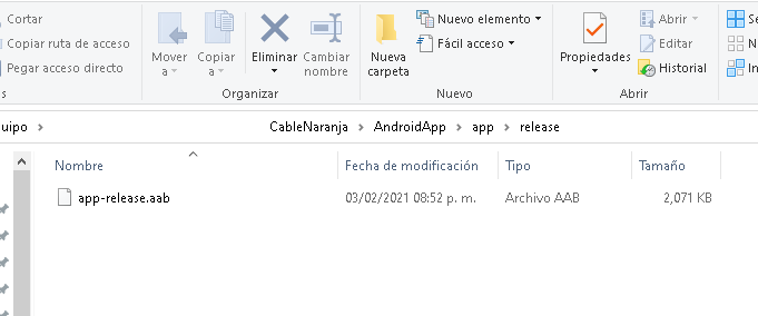 Queda a decisión de cada quien el formato a elegir, aunque por requerimiento de Google Play Store, es recomendable usar AAB.